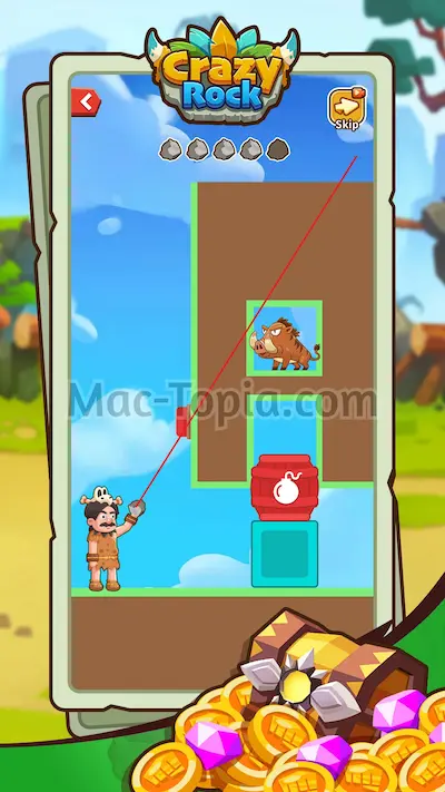 عبارة عن لعبة رمي الصخور التي تعتمد على مهارة اللاعب في التصويب على الاهداف, تقدم اللعبة العديد من الشخصيات التي تستطيع الاختيار فيما بينهم, ليس هذا فقط بل و يستطيع اللاعب الاختيار من بين العديد من الاسلحة المختلفة التي يستطيع استخدامها في التصويب على الاهداف, تبدأ اللعبة بمراحل ذات افكار بسيطه تستطيع تحقيق الهدف بسهوله جدا, مع النجاح في اصابة الاهداف سوف تنتقل الى المستويات الاكثر تقدم و صعوبة, تدور فكرة اللعبة الى وقوف الشخصية في مكان و هناك هدف عليك التصويب عليه سواء مباشرة امامك او بمكان اخر, في بعض المراحل سوف يظهر الهدف في مكان و امامك حواجز تمنع الوصول الى الهدف مباشرة, تستطيع التصويب بمسار ملتف لكن يحتاج الى المزيد من المهارة حتى تستطيع الوصول للهدف, لكن هناك بعض الالغاز التي عليك التفكير فيها للقضاء على الهدف التي لا تعتمد على الإصابة المباشرة, عليك النظر امامك على الحواجز و العناصر المتواجدة من حولك.