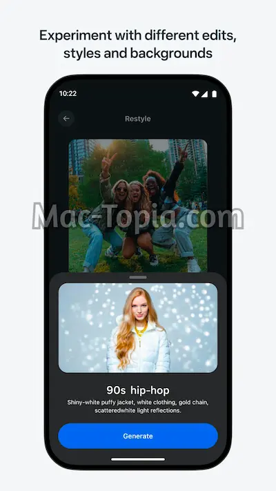 تم اصدار اول نسخة تحميل تطبيق ميتا الذكاء الاصطناعي يوم 10 من شهر ابريل عام 2024 عن طريق شركة Meta Platforms Inc الأمريكية, يندرج الى مجموعة التطبيقات الانتاجية المتخصصة في الذكاء الاصطناعي لتقديم الدعم و المساعدة للمستخدمين, لا يحتاج الى تسجيل حساب جديد او ربط احد حساباتك بمنصات التواصل الاجتماعي للإستمتاع بخدمات التطبيق, يدعم تصميم مقاطع الفيديو و الصور من خلال تقنيات حديثة تساعد على التصميم من خلال الشرح الكتابي, ليس هذا فقط بل يساعد في التعديل على الصور و مقاطع الفيديو ايضا التي تم التقاطها سابقا, بالإضافة الى السماح بمشاركة الأعمال النهائية على حائط المنصة للسماح للمستخدمين الاخرين بمشاهدتها او اخذ الأفكار من الفيديوهات التي يتم عرضها, يتميز بواجهه ذات تصميم بسيط و انيق يدعم العديد من اللغات المختلفة, منها دعم كامل لواجهه تعمل باللغة العربية و هو ما يساعد على سهولة الاستخدام بدون الحاجة الى شرح, يدعم كافة المجالات للمساعدة و تلقي المعلومات من مصادر موثوقة.